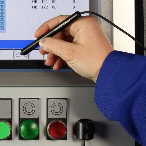 Dieser Touchstift zeichnet sich durch seine elegante und griffige Form aus. Der Stift ist durch das flexible Textilverbindungsband fest mit dem Halter verbunden. Das stellt sicher, dass der Touchstift zuverlässig zur Bedienung des Touchpanels zur Verfügung steht.